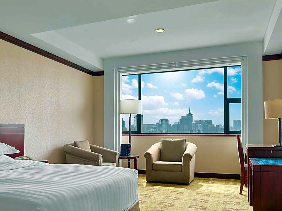 Spacious room comes with a flat-screen TV and a bathtub.