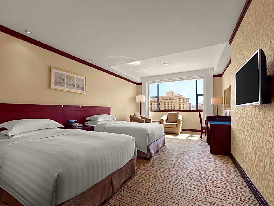 The twin room comes with a flat-screen TV and a bathtub.